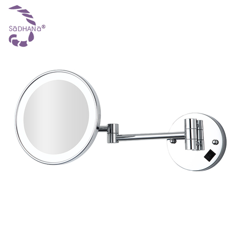 गर्म फैशन श्रृंगार दर्पण प्रबुद्ध स्टेनलेस स्टील दीवार घुड़सवार आवर्धक तह नेतृत्व में दर्पण दीपक बाथरूम Sminktukor
